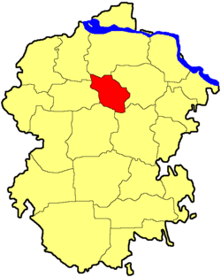 Krasnoarmeysky District (Russian: Красноарме́йский райо́н; Chuvash: Красноармейски районĕ) is an administrative[1] and municipal[2] district (raion), one of the twenty-one in the Chuvash Republic, Russia. It is located in the north of the republic and borders with Cheboksarsky District in the north, Tsivilsky District in the northeast, Kanashsky and Vurnarsky Districts in the south, and with Alikovsky and Morgaushsky Districts in the west. The area of the district is 456.3 square kilometers (176.2 sq mi).[3] Its administrative center is the rural locality (a selo) of [[Krasnoarmeyskoye, ef name='about'/>Chuvash Republic|Krasnoarmeyskoye]].[1] Population: 16,036 (2010 Census);[4] 17,940 (2002 Census);[7] 19,693 (1989 Census).[8] The population of Krasnoarmeyskoye accounts for 26.6% of the district's total population.[4]