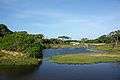 The park's wetland areas are surrounded by dry zone tropical thorn forest. The inland forest's flora is dominated by Manilkara hexandra (Sinhalese "palu"), Hemicyclea sepieria, Bauhinia racemosa, Cassia fistula ("ehela"), Chloroxylon swietenia ("burutha"), and Salvadora persica species.[2] The dominant tree of the Kumana villu is Sonneratia caseolaris, while Typha angustifolia is the dominant reed. Terminalia arjuna trees dominate the riverine forests along the Kumbukkan Oya. The common aquatic plants of the swamp are colourful Ludwigia spp., Nelumbo nucifera, Nymphaea pubescens, Aponogeton spp. and Neptunia oleracea.