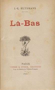Là-Bas, translated as Down There or The Damned, is a novel by the French writer Joris-Karl Huysmans, first published in 1891. It is Huysmans' most famous work after À rebours. Là-Bas deals with the subject of Satanism in contemporary France, and the novel stirred a certain amount of controversy on its first appearance. It is the first of Huysmans' books to feature the character Durtal, a thinly disguised portrait of the author himself, who would go on to be the protagonist of all of Huysmans' subsequent novels: En route, La cathédrale and L'oblat.