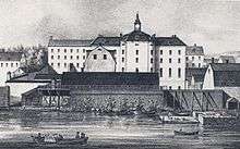 Långholmens rasp- och spinnhus, commonly known as Långholmens spinnhus, was a women's prison in Långholmen, Stockholm, Sweden.[1] The prison was established in 1649 when the Malmgården in Alstavik at Långholmen was erected, and was closed in 1825.[2] The building became state property in 1724 and was used as a spinnhus (thread-spinning house).[3] Malmgården was later expanded to increase its capacity. In 1825 the spinnhus was relocated to Norrmalm. After the move, the Långholmen Prison started to operate on the grounds.[4]