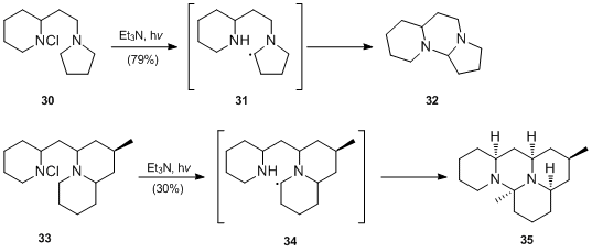 20. 1 2 3 4 Ban, Y.; Kimura, M.; Oishi, T. (1976). "A Synthesis of (±)-Dihydrodeoxyepiallocernuine by Application of a Facile Hofmann-Loeffler Type of Photocyclization". Chem. Pharm. Bull. 24 (7): 1490–1496. doi:10.1248/cpb.24.1490.