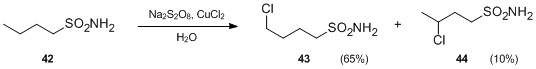 23. Nikishin, G. I.; Troyansky, E. I.; Lazareva, M. I. (1985). "Regioselective one-step γ-chlorination of alkanesulfonamides. Preponderance of 1,5-H migration from sulfonyl versus amide moiety in sulfonylamidyl radicals". Tet. Lett. 26 (31): 3743–3744. doi:10.1016/S0040-4039(00)89238-2.