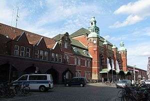 Lübeck Hauptbahnhof (German for Lübeck main station) is the main railway station serving the Hanseatic city of Lübeck, in the German state of Schleswig-Holstein. It is a through station at the western edge of the city centre. With approximately 31,000 travelers and visitors each day, Lübeck Hbf is the busiest of all the railway stations in Schleswig-Holstein. It is classified by the Deutsche Bahn as a Category 3 station.