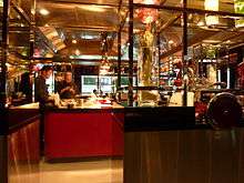 The decor of the restaurant has been described as "contemporary chic featuring lush red velvet seating complemented by dark wood furniture."[1] Like the Tokyo restaurant, L'Atelier de Joël Robuchon of Hong Kong is divided into two areas – L'Atelier and Le Jardin.[2] The seats of L'Atelier are in a square around the open kitchen, in a manner similar to a sushi restaurant.[3] The restaurant has an extensive wine collection, and was awarded the Wine Spectator's "Grand Award" in 2010.[1] As of 2012, there are twelve L'Atelier de Joël Robuchon restaurants around the world.[4]