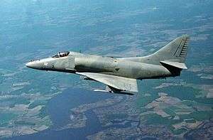 A U.S. Navy Douglas A-4F Skyhawk in flight in 1987