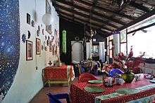 The hacienda extends over thirty hectares located in the municipality of Cunduacán in the Chontalpa region of Tabasco.[1][2] It is part of the Cacao Route along with various other chocolate haciendas such as La Luz and Jesús María and the Comalcalco archeological site.[1][4] Today it is the property of Benito and Alfonso Fernández, who have preserved the house almost completely intact.[1] The main room of the house contains photography done by former owner Santiago Cruces, as well as preserved specimens of a serpent locally called mazacoatl. The front yard has a small deep well, an old sugar mill and an area dedicated to the raising of earthworms.[1] The hacienda grows cacao and sugar cane. Another important industry is the raising of organic earthworms for composting. In a closed section in the back of the property, iguanas, alligators and Central American river turtles are allowed to reproduce each year.[1]