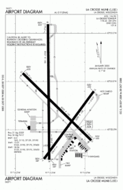 La Crosse Regional Airport (IATA: LSE[3], ICAO: KLSE, FAA LID: LSE) is a city owned public use airport located four nautical miles (5 mi, 7 km) northwest of the central business district of La Crosse, a city in La Crosse County, Wisconsin, United States.[2] Until August 2013, the airport was known as La Crosse Municipal Airport.[4]