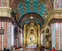 La Iglesia de El Sagrario (Spanish, "Church of the Sanctuary" or "Church of the Shrine") is a large 17th century chapel in Quito, Ecuador. It is adjacent to, and attached to, the 16th century Quito Cathedral, but is generally accessed separately. It is located in the historic center of the city, on Calle Garcia Moreno (formerly De las Siete Cruces), a few meters from the corner of Calle Eugenio Espejo. It is a part of the whole of the Cathedral complex, although it seems more an independent church than an attached chapel, both due to its size and to its importance in the Quiteño imagination.