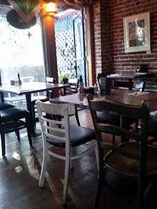 A restaurant was added in the 1980s, Café Valparaíso, that has added itself to the neighborhood's Gourmet Ghetto and is award winning.[5] It is also known as Café de la Peña.[6] The cafe also sells endemic Chilean foodstuffs and novelties. Valpo's menu focuses heavily on Chilean empanadas.[6] The menu has evolved over the years adding other Latin American cuisine such as food from Cuba, Mexico, Guatemala, and Peru.[6] The menu does however continue serving many Chilean dishes such as Humitas.[6]