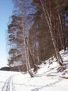 Lake Sapsho (Russian: Сапшо́) is a glacial lake in Demidovsky District of Smolensk Oblast, Russia. It is the largest lake[1][2] (3,04 km2) of the Smolenskoye Poozerye National Park. It is situated northeast of Demidov in the northwestern part of the oblast, near the settlement of Przhevalskoye. A famous 19th century Russian traveller Nikolay Przhevalsky compared the lake with Lake Baikal in miniature.[3][4] The lake is a natural monument.[5][6] It is connected with the Baltic Sea by the Sapsha, Vasilyevka, Yelsha, and Daugava rivers. There are 4 big and 2 small islands on the lake. There are a lot of tumuli of the Tushumlin culture by Lake Sapsho.[7][8] The flora and fauna of the lake are very diverse. Yet in the beginning of the 20th century there was the industrial fishery.[9] Though now any industry is prohibited here. A lot of species of the flora and fauna of the lake are in the Red Book.[10]