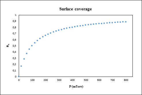 where is the fractional occupancy of the adsorption sites and is the volume of the monolayer. A continuous monolayer of adsorbate molecules surrounding a homogeneous solid surface is the conceptual basis for this adsorption model.[1]