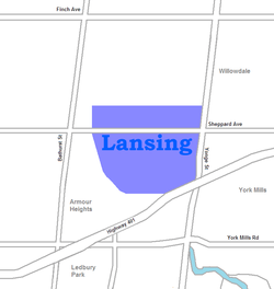 Lansing is a neighbourhood in the North York district of Toronto, Ontario, Canada. It is defined by the City of Toronto as Lansing-Westgate.