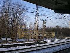 In the early 1950s, behind the station was built the electric substation. The project building is made in the tradition of Socialist Classicism, low squat building is crowned by a small turret with a spire. Electrification of a site of road has begun with a direction Leningrad-Zelenogorsk (now it is a part of direct Saint Petersburg Finlyandsky-Vyborg) in 1951.[1] The direction on station Finlyandsky Rail Terminal and Udelnaya station been electrified.