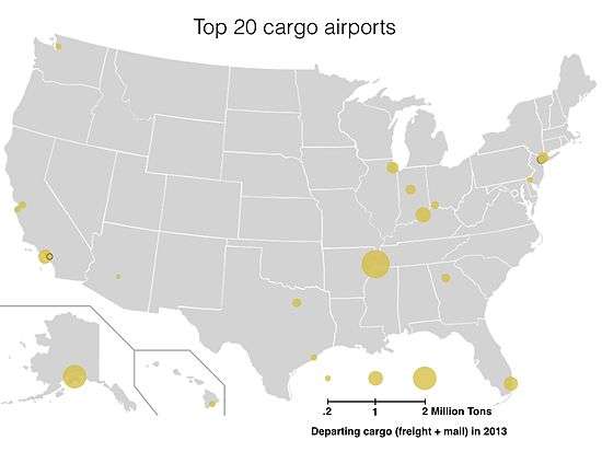 List of the Largest cargo airports in the United States based on tons of departing cargo (freight + mail) in 2013.[1][2]