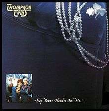 "Lay Your Hands on Me" is a 1984 song by the British band Thompson Twins. It was the first single to be released from their 1985 album Here's to Future Days, and was released in the UK almost a year in advance of the album. It was written by Tom Bailey, Alannah Currie, and Joe Leeway. There are two main versions of the song, with various edits and remixes of the two. The first version was produced by Alex Sadkin & Tom Bailey was released in late 1984 in Europe and Australia. The 1985 version was a reworking co-produced by Nile Rodgers, adding electric guitar and a gospel choir and released as a single in the US (this version appeared on the album). The single peaked at #13 in the UK, spending nine weeks on the chart.[1] The single fared better in America where it peaked at #6 on the US Billboard 100[2] and also peaked at #46 on the US Dance /Club Play Singles.[3]