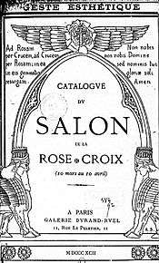 Satie wrote the score for Le Fils des étoiles during his short-lived involvement (1891-1892) as official composer and chapelmaster of the Mystic Order of the Rose + Croix. This esoteric-religious-artistic group, led by the flamboyant Péladan, aimed to "ruin realism, reform Latin taste and create a school of idealist art" in 1890s France.[9] Particular reverence was paid to Symbolist art and to the music of Richard Wagner, whom the Rosicrucians valued above all composers.[10] After the Comédie-Française in Paris rejected the script for Le Fils des etoiles in 1891, Péladan gained financial backing from Count Antoine de La Rochefoucauld to launch the annual Salon de la Rose + Croix (1892-1897) for the promotion of his work and ideas. The premiere staging of Le Fils would feature prominently in the first Rosicrucian salon.
