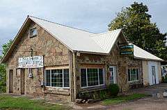 The Lee Service Station is a historic commercial building at 28 South Broadway in Damascus, Arkansas. It is a single-story frame structure with a cross-gable roof configuration, its exterior finished in stone veneer with brick trim. It has a single former garage bay on the right side, the bay opening now enclosed with a pedestrian door at its center. To its left is an office space, with a center entrance flanked by a large multi-pane windows. Door and window openings are trimmed in brick laid in a three-in, three-out pattern, and the stone veneer is in a herringbone pattern. These design elements are all signatures of the builder, Silas Owens, Sr., the master mason who finished the exterior about 1940. The building served as an automobile filling and service station through the 1950s, and has since seen a variety of other commercial uses.[2]