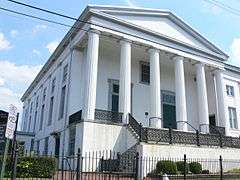 Leigh Street Baptist Church is a historic Baptist church located in Richmond, Virginia. It was designed by noted architect Samuel Sloan and built between 1854 and 1857. It is a three-story, Greek Revival style stuccoed brick structure. It features a Grecian Doric, pedimented portico with six fluted columns and a full entablature which continues around the side of the church. Additions were made in 1911, 1917, and 1930.[3]