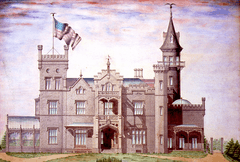 Leland Castle (also known as Castle View) is a building in New Rochelle, New York. It was constructed during the years in 1855 - 1859 in the Gothic revival style, and was the country residence of Simeon Leland, a wealthy New York City hotel proprietor. Leland began to assemble an estate as early as 1848, and in 1855 began the erection of this palatial sixty room mansion.[3] The home was designed by New York City architect William Thomas Beers. A north and south wing were added to the castle in 1899 and 1902 respectively.[1][4]