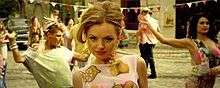 An accompanying music video for "Lemonade" was posted onto the YouTube channel of Stan's label, Maan Studio, on 4 June 2012[18] after it was previewed one day before.[19] It was shot by Iulian Moga in April 2012[19] at the MediaPro Pictures studios in Buftea, Romania.[4][5] The clip commences with Stan entering a kitchen wearing a red-white stripped dress.[6] Subsequently, she is portrayed cutting lemons and making lemonade, following which she makes a phone call and walks down the street sporting a lemon-printed yellow dress and smiling into the camera. Next, Stan is seen singing in front of a red car, flirting with a man, which is followed by the appearance of two police men. They enter a store and the singer is presented selling lemons in the street. Afterwards, the video switches from color to sepia, as she is present at a block party; it closes with Stan posing in front of a backdrop designed with different types of shoes.[18]