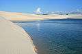 The Lençóis Maranhenses National Park (Parque Nacional dos Lençóis Maranhenses) is a national park located in Maranhão state, in northeastern Brazil, just east of the Baía de São José, between 02º19’—02º45’ S and 42º44’—43º29’ W. It is an area of low, flat, occasionally flooded land, overlaid with large, discrete sand dunes. It encompasses roughly 1,500 km2 (580 sq mi), and despite abundant rain, supports almost no vegetation. The area became a National Park on June 2, 1981.