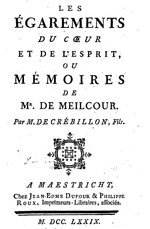 Les Égarements du cœur et de l'esprit ou Mémoires de M. de Meilcour (French: Strayings of the Heart and Mind, or Memoirs of M. de Meilcour) is a novel by Crébillon fils, which appeared in three parts from 1736 to 1738. It is apparently unfinished, though critics differ on whether this was a deliberate decision of the author or whether he intended to finish it.