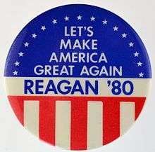 - ↑ Margolin, Emma (September 9, 2016). "Who really first came up with the phrase 'Make America Great Again'?". NBC. Retrieved September 10, 2016.