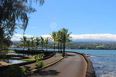 Close to this park is the small island called Moku ola, (also known as Coconut Island), connected to the park by a footbridge. It is a good place for a picnic, and some limited swimming. The name Moku ola literally means "island of life" in the Hawaiian language, since it was site of an ancient temple dedicated to healing.[2] There is a stone tower on the east side of the island which is the remnant of the old footbridge which was destroyed by a tsunami. From Coconut Island one has a great view of Hilo Bayfront, Downtown Hilo, and the rest of Hilo Bay. To the east, you can see the massive breakwater protecting Hilo Bay. It is located at coordinates 19°43′36″N 155°4′6″W / 19.72667°N 155.06833°WCoordinates: 19°43′36″N 155°4′6″W / 19.72667°N 155.06833°W.[3] It is maintained by the County of Hawaii.[4]