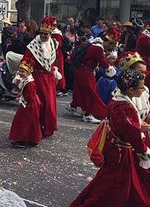 Limassol Carnival Festival, which is said to be an old custom traced to pagan rituals,[15] is now held as an entertaining event.[16] The local belief is that it is a Hellenistic heritage that goes back to pre-Christian times and to an ancient Greek festival honoring Dionysus, the deity of wine and fun. However, the first written reference оf the carnival is by Nеоphitos Egklistos, who accuses Cypriots of idolatry and accepting an alien tradition of celebrating the start of the Great Fast. The second historical mention is from Christophor Furkher Nirenberg, whо visited Cyprus in 1566 during a journey to the Holy Land. Nirenmberg was impressed by the carnival parades and told a story about how local noblemen organize amazing feasts, where people dance, sing and have fun.[17] As practiced now in Limassol is a legacy from the Venetians who ruled over Cyprus during the 15th–16th centuries.[16][18][19] The Carnival of Venice, however, takes itself very seriously, in comparison. In contrast, both adults and children can join the Limassol Carnival and as a rule everyone pours foam on each other in the Old City. The celebrations are held in most towns around the island, but the event held in Limassol is by far the largest and most popular.[11][19]
