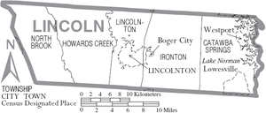 Map of Lincoln County, North Carolina With Municipal and Township Labels