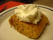 Boston cream pie is a cake that is filled with a custard or cream filling and frosted with chocolate.[1]