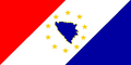 | Proposed, never used | Second alternative in the second set of proposals. | A red, white, and blue diagonal tricolour with a silhouette map of Bosnia and Herzegovina within a circle of 12 gold 5-pointed stars. |