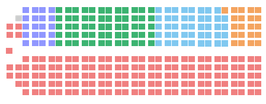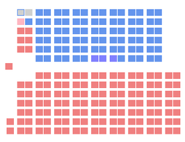 - ↑ The diagrams show the composition of each parliament, colour-coded by party (click on an image to see its key) and arranged as the MPs might sit. The speaker of the house is shown on the left hand side, with the governing party on the speaker's right (the bottom of the diagram) and the opposition on the speaker's left (the top).
