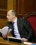 - ↑ During his term as Chairman, Turchynov switched allegiance to People's Front, which was established on 10 September 2014. People's Front did not take part in the 2012 Ukrainian parliamentary election and it never had a political faction in parliament prior to the 2014 Ukrainian parliamentary election.[11][12][13]