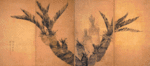 | Sporting Cranes, ink on paper, by Ōkyo 紙本墨画遊鶴図〈応挙筆/鶴ノ間貼付〉 shihon bokuga yūkaku zu (Ōkyo hitsu) | C18 | Kotohira | Kotohira-gū | seventeen panels | | 34°11′02″N 133°48′34″E / 34.183945°N 133.809410°E | ||
