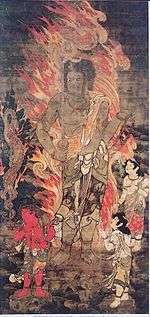 | Fudō Myōō with Three Attendants, colour on silk 絹本著色不動明王三童子像 kenpon chakushoku Fudō Myōō san-dōji zō | Kamakura period | Nagasaki | Kiyomizu-dera (清水寺) | | 32°44′28″N 129°53′03″E / 32.741032°N 129.884057°E | |||