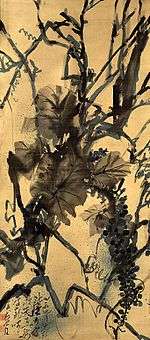 | Grapes, light colour on silk, by Tachihara Kyōsho 絹本淡彩葡萄図〈立原杏所筆/〉 kenpon tansai buzō zu (Tachihara Kyōsho hitsu) | 1835 | Taitō | Tokyo National Museum | | 89.7 centimetres (35.3 in) by 40.1 centimetres (15.8 in) | 35°43′12″N 139°46′32″E / 35.71994403°N 139.77563736°E | ||