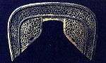 | Saddle fittings in gilt bronze openwork (金銅透彫鞍金具 kondō sukashibori kura kanagu)[nb 2][31][54] | Two gilt bronze saddle fittings, width: 43 cm (pommel), 52.5 cm (cantle) | Kofun period, 5th century | Ojin Mausoleum (kofun of Emperor Ōjin) in Habikino, Minamikawachi District, Osaka | Konda-Hachimangu, Habikino, Osaka | ![]() |