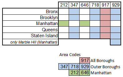 New York City; overlays with 212, 347, 646, 718 and 929 |