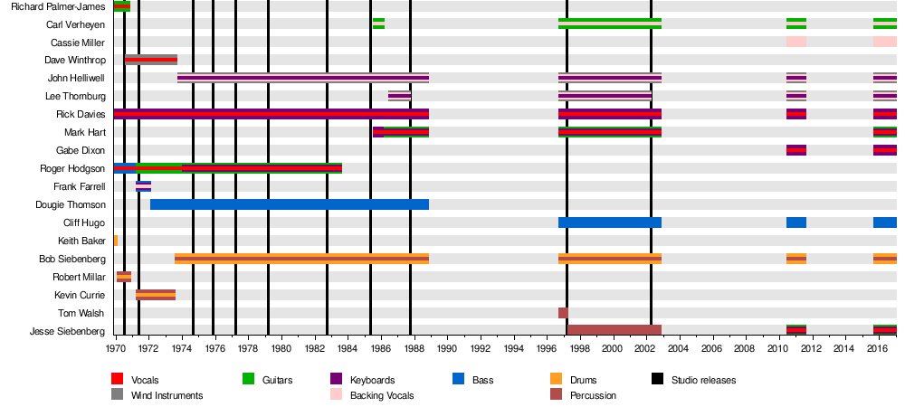 - Roger Hodgson – vocals, guitars, keyboards, bass, composition (1969–1983)