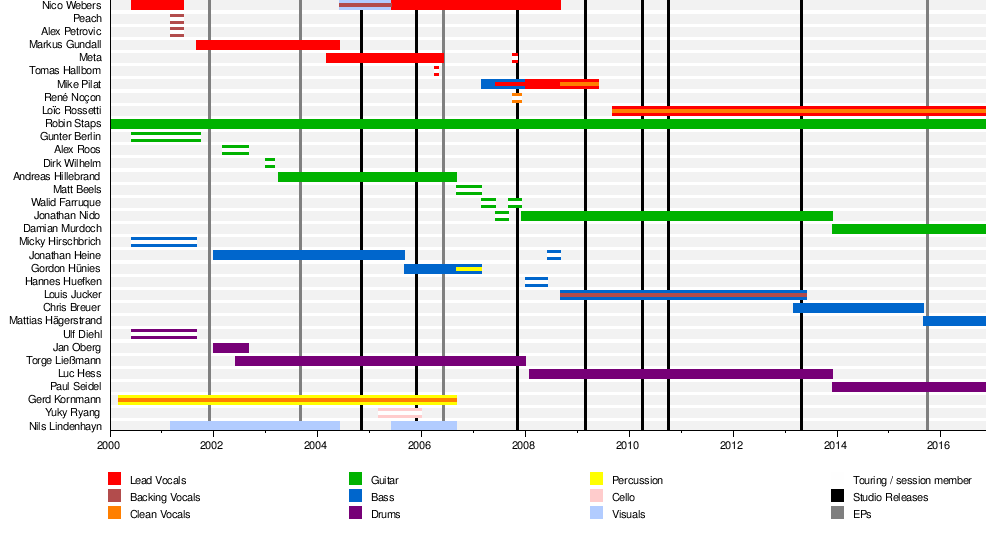 | Bass | Robin Staps | Jonathan Heine | Mike Pilat | Jonathan Heine | Louis Jucker | Mattias Hägerstrand | ||||