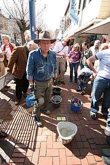 Gunter Demnig placing stolpersteine on the main road in Frechen, April 3, 2009