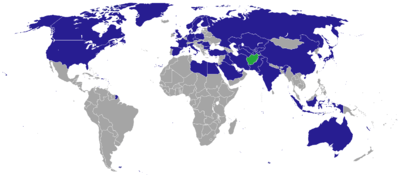 Map of diplomatic missions in Afghanistan