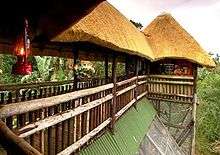Nigel’s base appears to be separate from the main complex, which means it deserves special mention. Like the main complex it appears to be a wooden structure with a thatch roof (which the escaped titanosaurs seem to find tasty, as seen in one of the episodes). Unlike the main complex it is a two-storey structure with balconies connecting the rooms. The ground level was never seen, although below one balcony there appears to be an aviary, which is probably where the Microraptor were put, given that one of them was seen with Nigel on a balcony at the end of the third episode. The Base is definitely home to Nigel’s pets and maybe the tame cheetah (and Microraptor) which have free run of his office and the facility.
