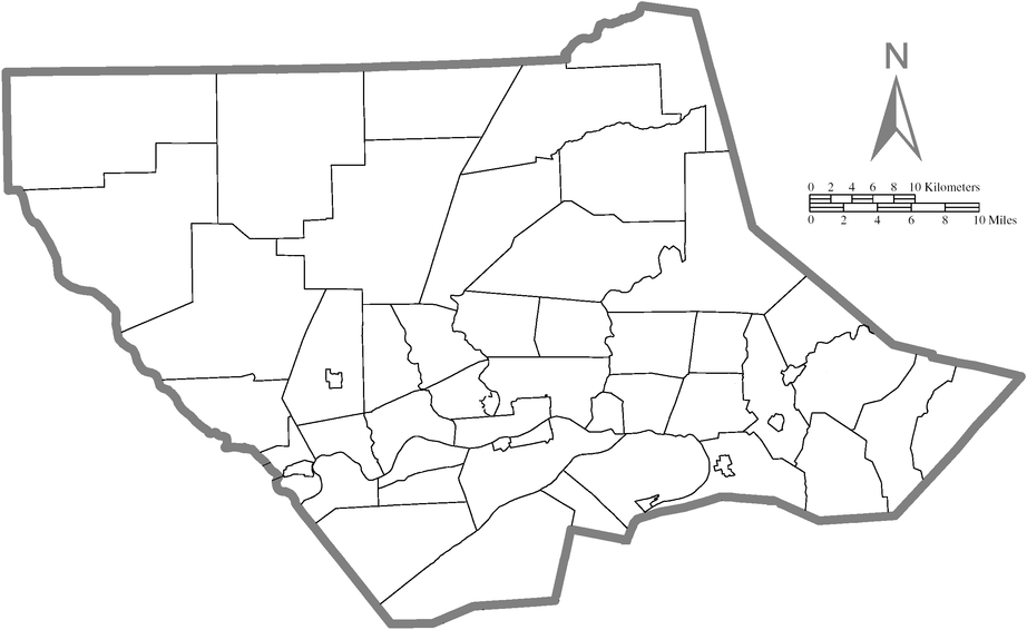 The map shown below is clickable; click on any municipality label to be redirected to the article for that city, borough or township.