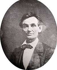 June 3, 1860 | Alexander Hesler[43] | Springfield, Illinois | Photograph | Library of Congress | Hesler took a total of four portraits at this sitting. Lincoln's law partner William Herndon wrote of this picture: "There is the peculiar curve of the lower lip, the lone mole on the right cheek, and a pose of the head so essentially Lincolnian; no other artist has ever caught it."[44] |