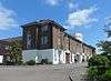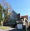 Protestant Nonconformity has a long history in the district. Baptist worship has taken place at Dormansland since 1792, and the church (which occupies a building dating from 1817)[20] helped to found several others in the area—such as those at Lingfield and Smallfield (both now closed).[21] The isolated Pains Hill Chapel near Limpsfield has existed since 1823,[22] and since World War II Evangelical congregations have developed in Hurst Green[23] and Smallfield.[24] Meanwhile, the village of Newchapel was chosen as the site of England's first Latter-day Saints' Temple, named the London England Temple.[25] The main towns have places of worship serving a wider variety of denominations: the Congregational Federation can be found in Caterham,[26] Oxted has an Open Brethren Gospel Hall,[27] a Quaker meeting house[28] and a Christian Science church,[29] and both places support Roman Catholic, Methodist and United Reformed congregations. Oxted's Catholic and United Reformed churches are both Grade II-listed: the former, a "quite exceptional building" of the early 20th century, combines the Perpendicular Gothic Revival and Arts and Crafts styles,[30] while the Church of the Peace of God (the United Reformed church) is a 1930s interpretation of the Byzantine style.[31] Elsewhere, the Plymouth Brethren have a meeting room in the former goods yard next to Upper Warlingham railway station in Whyteleafe.[32]