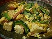 This is a list of tofu dishes. Tofu, also called bean curd, is a food made by coagulating soy milk and then pressing the resulting curds into soft white blocks. It is a component in many East Asian and Southeast Asian cuisines.[1][2]