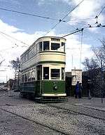 | Blackpool Corporation Tramways | 236 | Operational | Green and Cream | 1934 | 56 | Blackpool Boat car, formerly number 607. Spent all of its working life at Blackpool and was acquired by Crich in 2011. It was restored to original 1930s condition in Blackpool and entered Crich service for the first time in 2012.