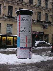 Ernst Amandus Theodor Litfaß (or Litfass; German pronunciation: [ˈlɪtfas];[1] 11 February 1816 – 27 December 1874) was a German printer and publisher. He invented the free-standing cylindrical advertising column which bears his name in German (Litfaßsäule).